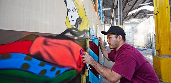 Tinho est l’un des précurseurs du street art au Brésil. Dès l’âge de 13 ans, il commence la pixação (graffiti au style singulier, typiquement brésilien), puis il passe naturellement au street art quelques années plus tard, après des études à l’école des Beaux Arts.